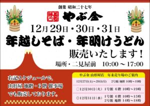 今年も、やぶ金の年越しそば・年明けうどん を販売いたします🌋🎍